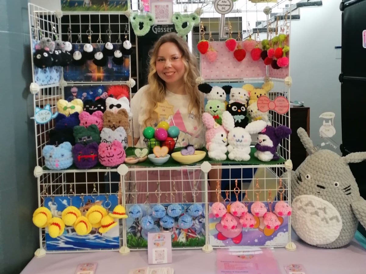 Hallo ich bin Animeeec und häkle Gaming und Anime inspirierte Charaktere. Vor allem mag ich es kleinere Sachen zu häkeln wie Schlüsselanhänger 🙂 Schaut gerne bei meinem Stand vorbei!